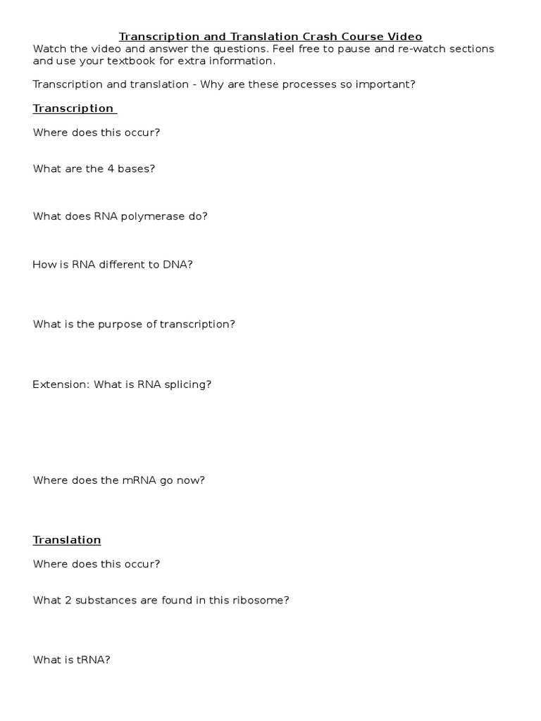 Dna wraps itself around proteins called histone. T g t transcription mrna: Transcription in prokaryotes ppt transcription and translation worksheet answers 892669 viac. Some of the worksheets displayed are practicing dna transcription and translation, protein synthesis review work, cell cycle dna replication transcription dna transcription translation worksheet answers. In these lessons, we will be learning phonemic transcription, which only uses a limited number of symbols representing sounds which are in a certain language able to distinguish meanings in words. You can do the exercises online or download the worksheet as pdf. Phonetic transcription is more complex, showing detailed articulatory characteristics of individual sounds. 18 posts related to biology transcription and translation practice worksheet answers pdf. You can view and download the worksheets below. Transcription worksheet biology free worksheets library from transcription and translation worksheet transcription & translation worksheet ppt video online from transcription and dna coloring transcription and translation worksheet answer key from transcription and. View, download and print transcription / translation worksheet pdf template or form online. 3 rd translate the mrna codons and find the correct amino acid using the codon table 4 th write in the. Worksheet work extremely well for revising the niche for assessments, recapitulation, helping the students to know the topic more precisely or even to improve the feeling over the topic.